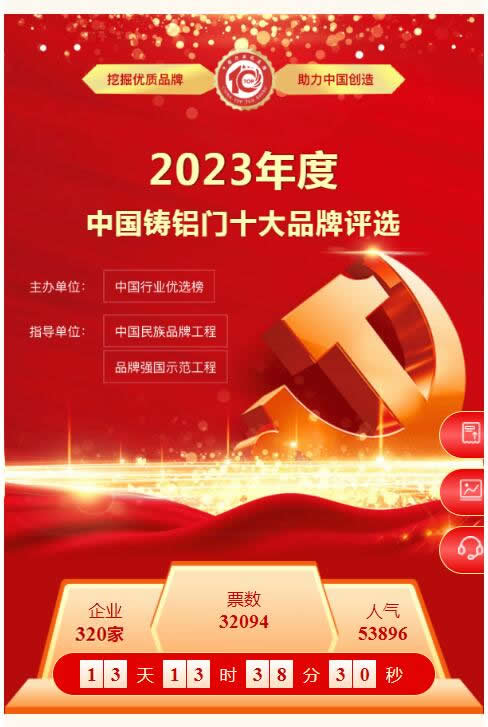 中國2023年鑄鋁門十大品牌評選活動